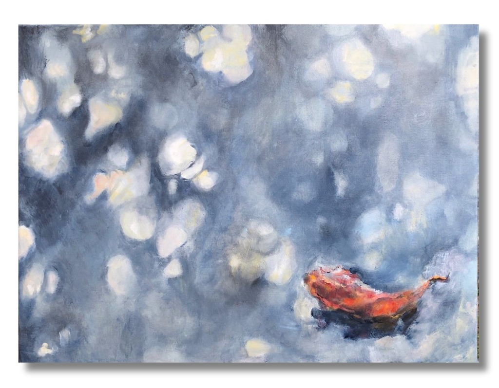 Przemijalność, technika mieszana na surowym płótnie, 40×50 cm, 2022,