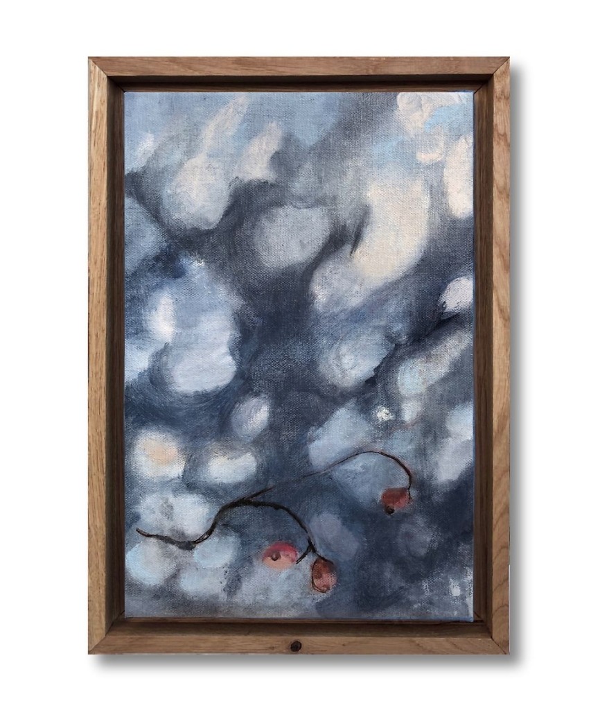 obraz na surowym płótnie, technika mieszana, 20×25 cm, 2022, dostępny